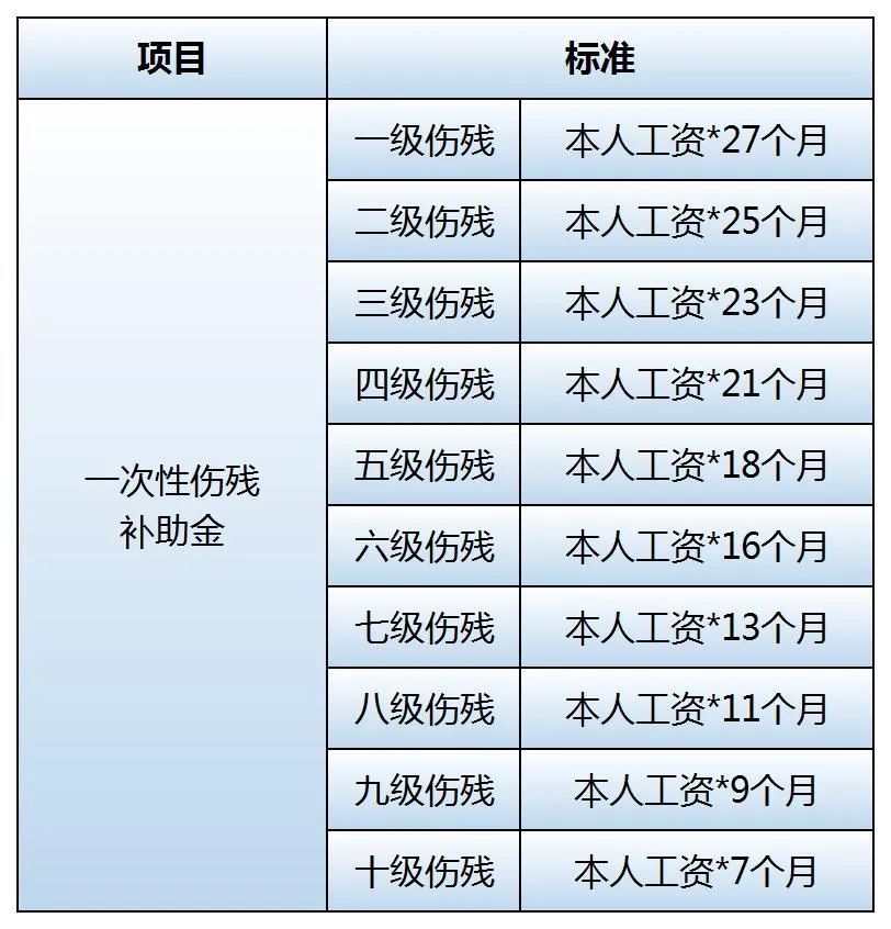 根據(jù)《工傷保險(xiǎn)條例》第三十五條、三十六條、三十七條規(guī)定:職工因工致殘,被鑒定為一至十級(jí)傷殘,享受以下待遇: